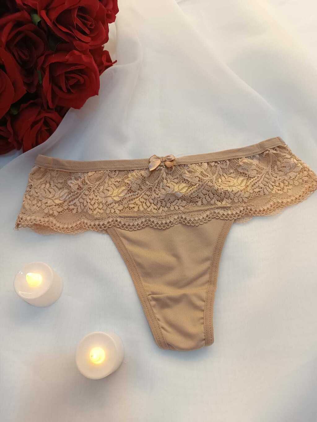 Calcinha fio dental com renda delicada e lacinho frontal — feita para quem ama seduzir com elegância.
